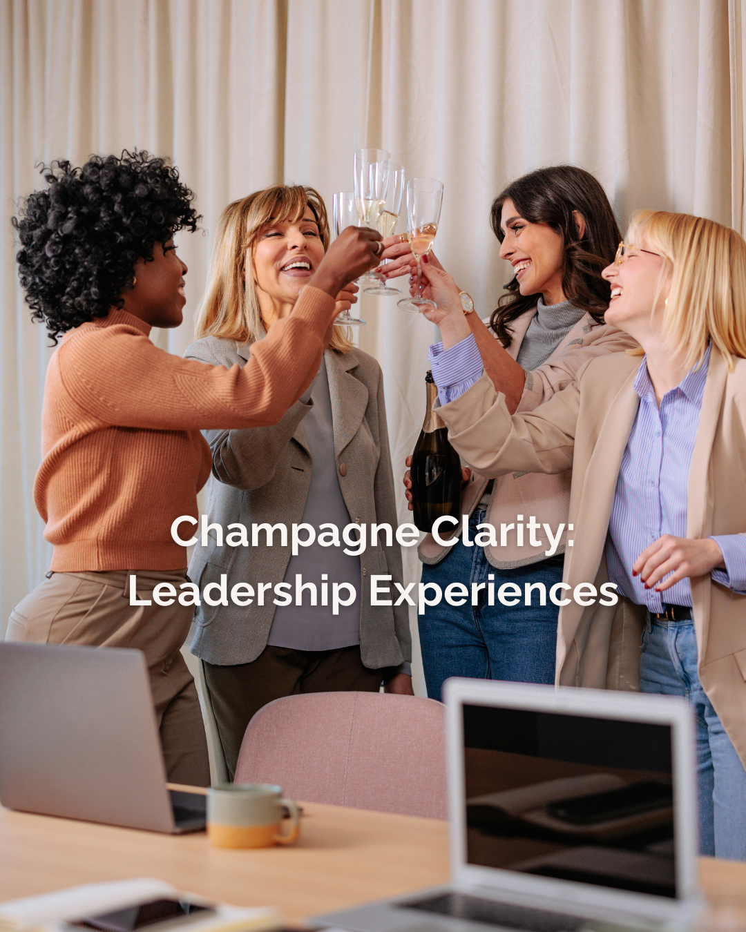 Through live and virtual salons, workshops, keynote talks, and future retreats, Champagne Clarity™ creates space for candid conversations about the current status quo of leadership, the challenges leaders face as they grow into more strategic roles, and reflections on what aligned leadership truly looks like — without reducing leadership to motivation, performance, or surface-level development.